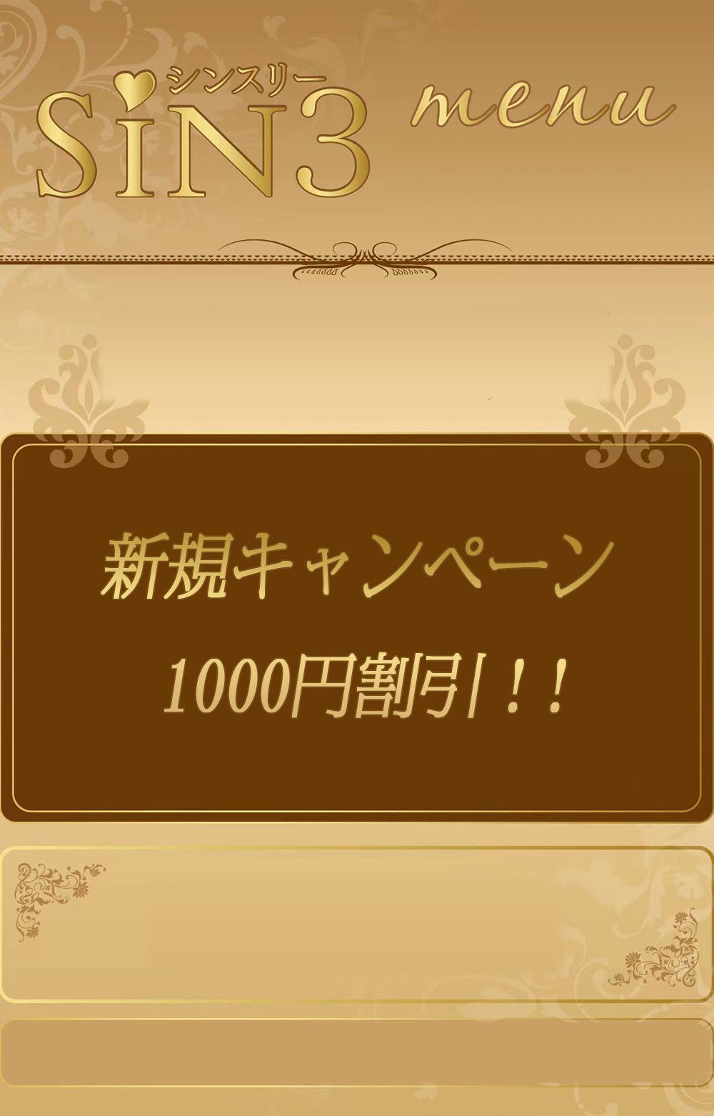 日頃より隠れ癒しサロンSIN3をご愛顧賜り、誠にありがとうございます。